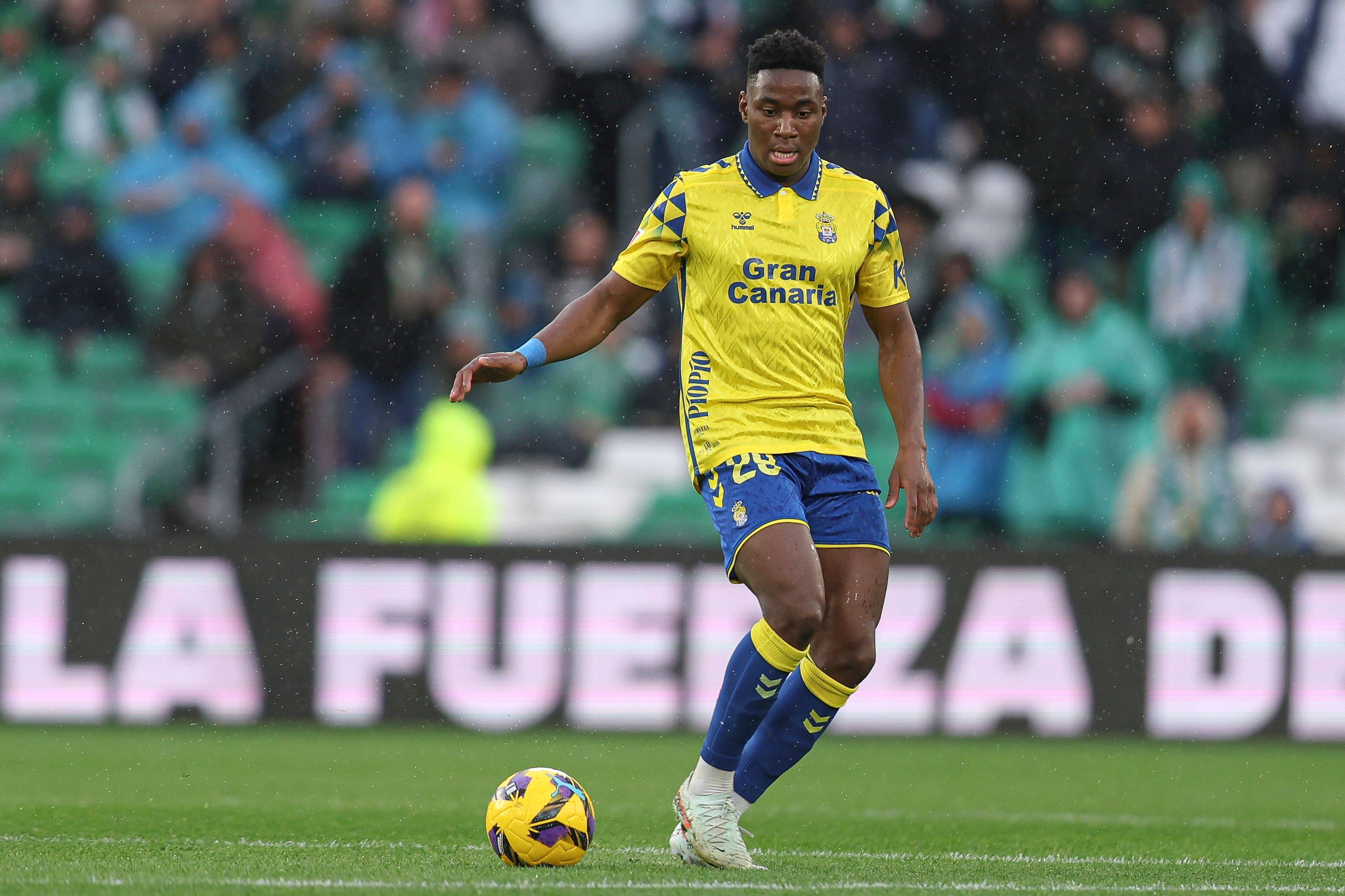 埃苏戈现年20岁,司职防守型中场,出道于葡体青训,本赛季外租至西甲拉斯帕尔马斯效力,已为球队出战17场西甲打进1粒进球,德转身价800万欧。